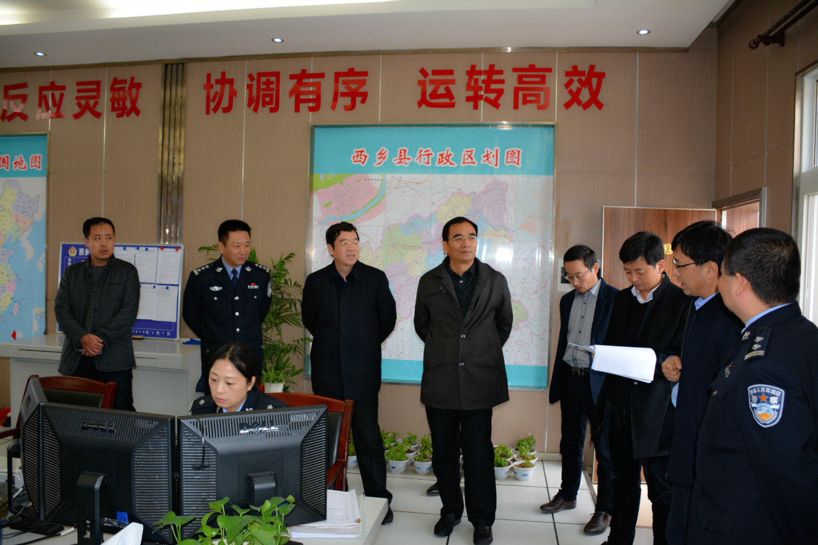 督查组首先来到杨河镇高土坝社区实地查看了综治视联网和视频监控建设情况,详细询问了综治信息化建设投入使用及相关设备运维情况,同时收集了社区工作人员对综治信息化建设方面反馈的意见、建议;随后督查组来到县公安局,查看了合成作战室、110指挥中心,了解了有关信息化建设在社会治安、案件侦破及重点人员管控等方面发挥的实战化作用。